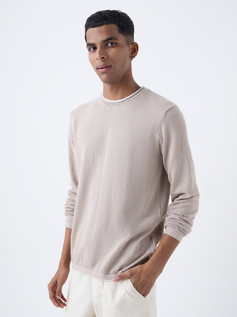 ETA Beige Textured Relaxed-Fit Cotton Sweater