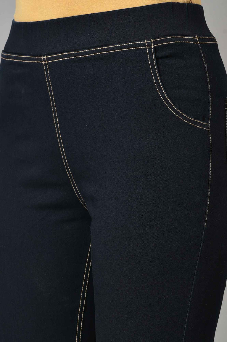 This Jegging In Denim Lycra Comes In Mid-Rise And Elasticated Waistband. It Also Has Both, Front And Back Pockets. Its Tretchability Makes It Comfortable For All Day Wear.