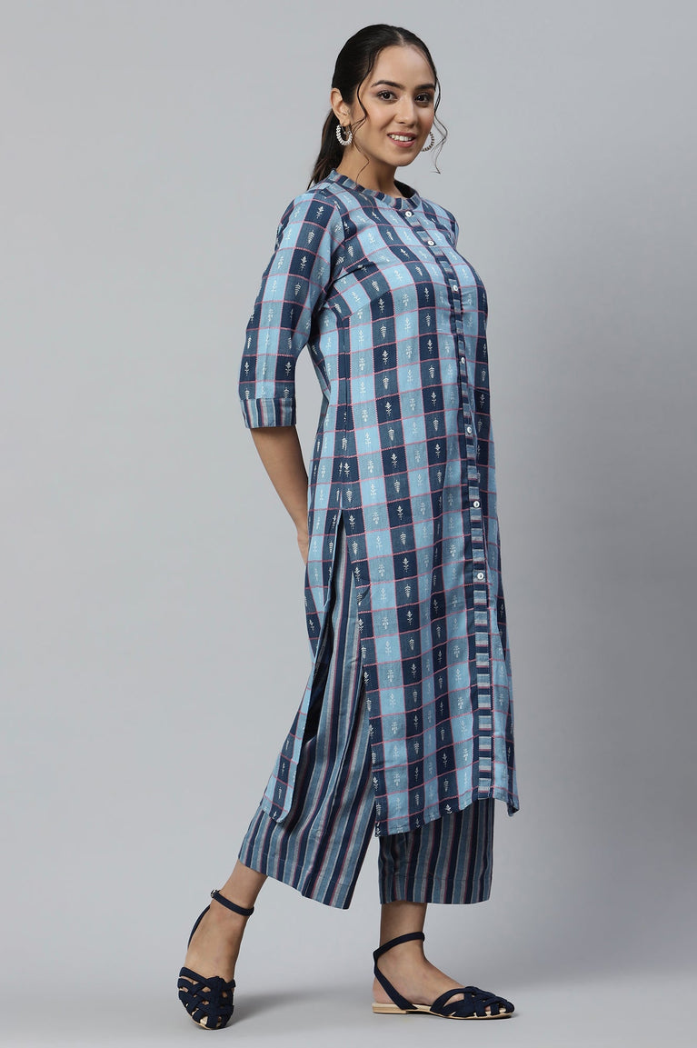 Blue kurta and Straight Pants Co-ord Set