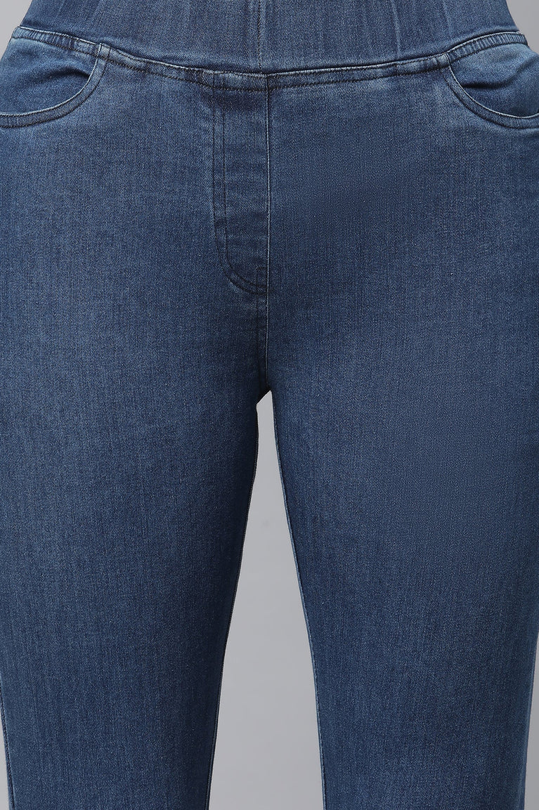 Jester Blue Solid Churidar With Elasticated Waistband.