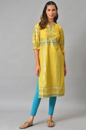 Crafted In Cotton Fabric This Aurelia kurta Has Embellished Yoke, Round Neckline And Designed In Straight Silhouette. It Is A Right Pick For An Evening Look.