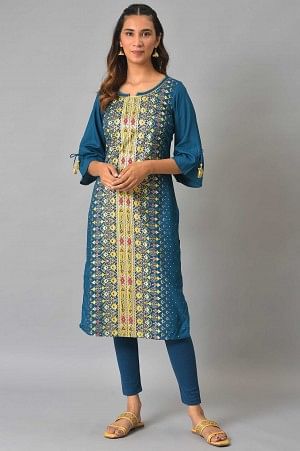 Crafted In Smooth And Breathable Cotton Dobby, This kurta Is Both Classic And Modern Aplenty. In Attactive Teal Colour, It Boasts An Unconventionally Placed Embroidery And A Sophisticated Silhouette.