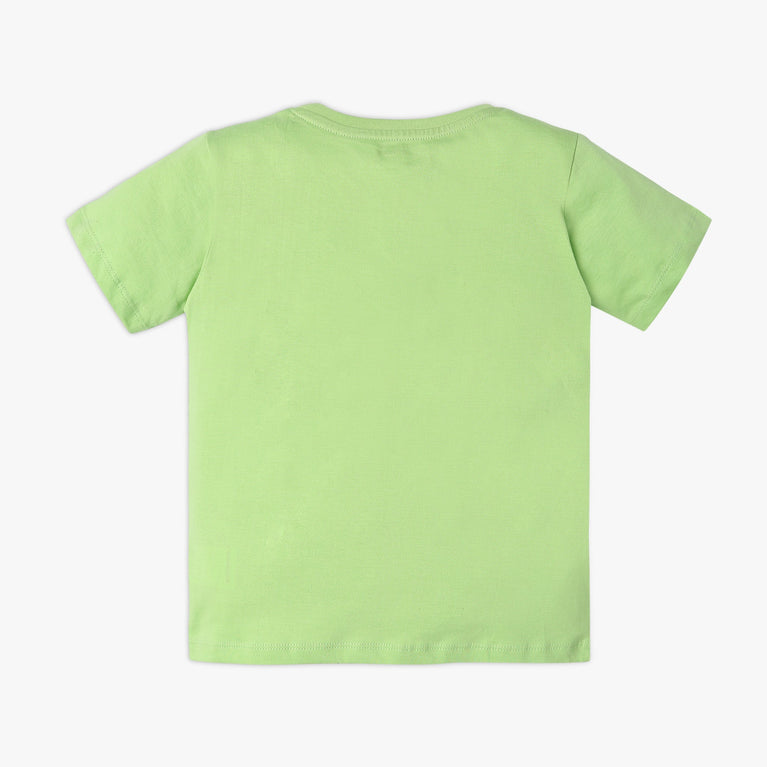 This t-shirt has a crew neck and half sleeve. Made from cotton, your kid's feel comfortable wearing a product.
