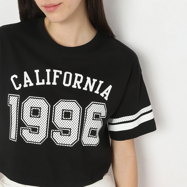 Boxy Fit Printed Short Sleeve Crop T-Shirt