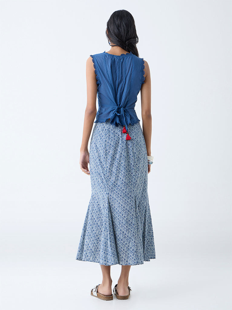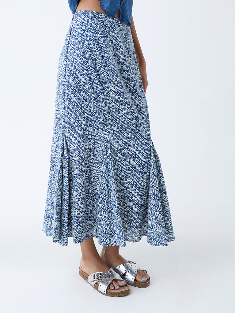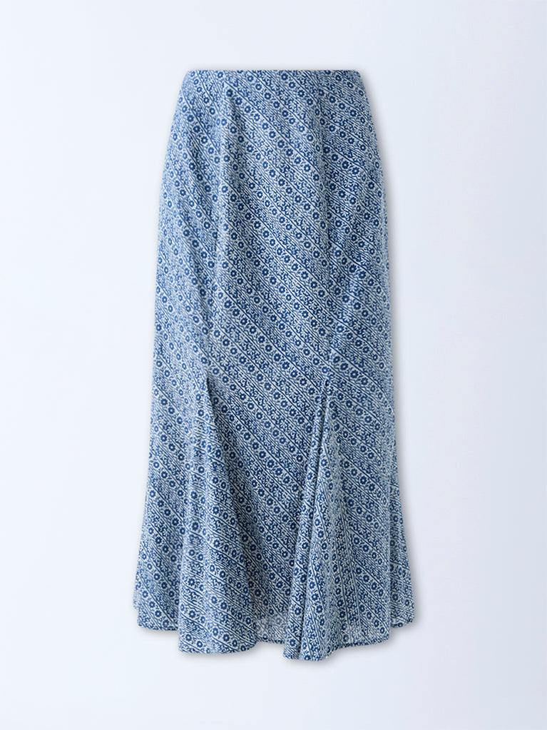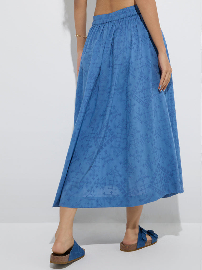 Bombay Paisley Blue Floral Detailed Cotton Skirt