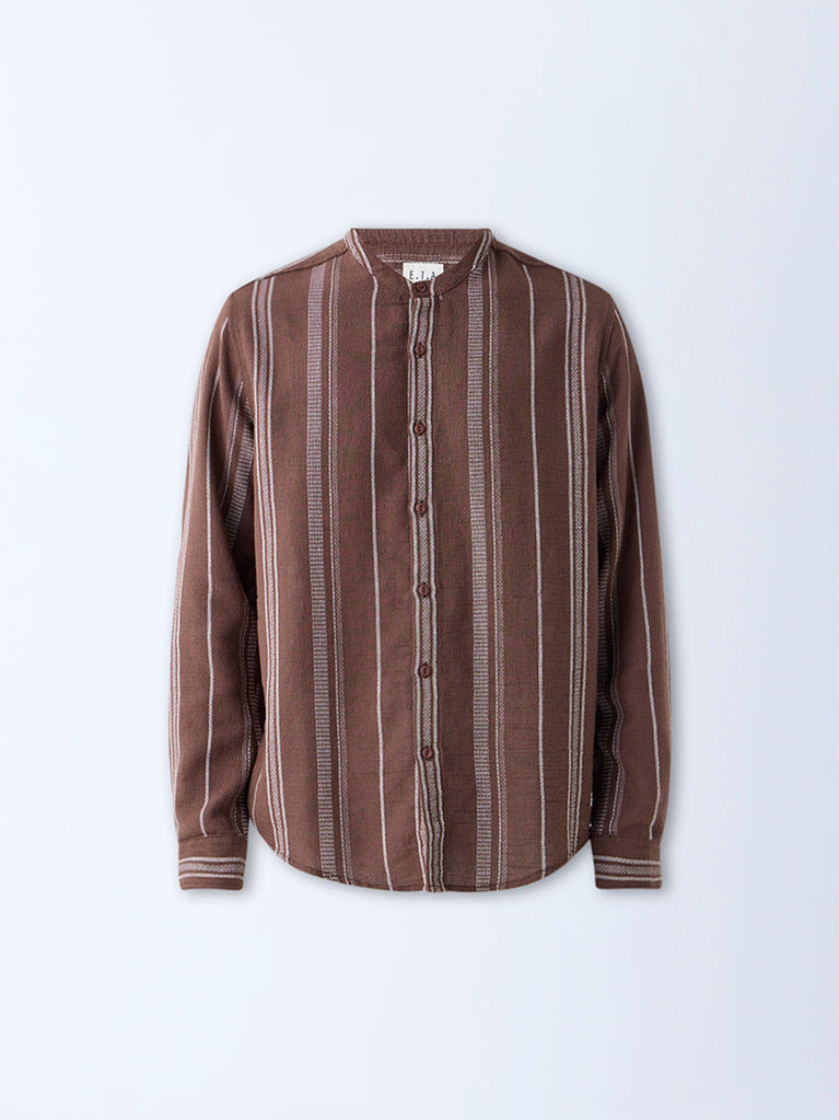 ETA Brown Striped Relaxed-Fit Cotton Shirt