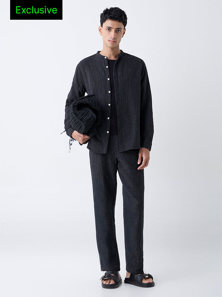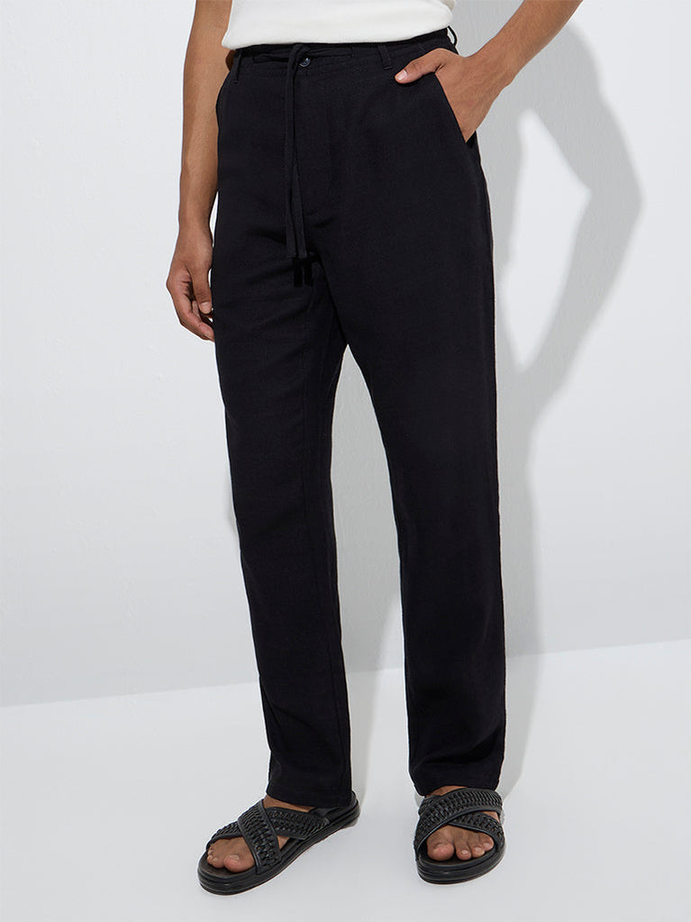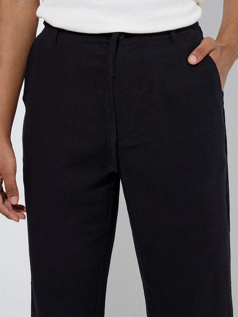 ETA Black Textured Relaxed-Fit Mid-Rise Cotton-Blend Pants