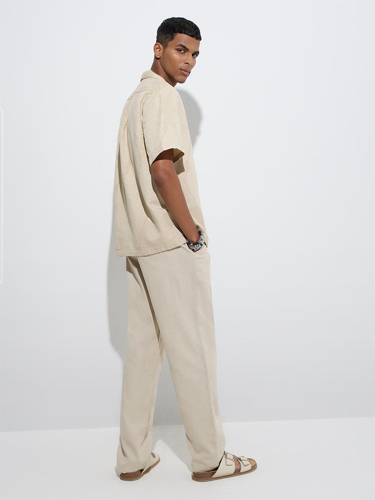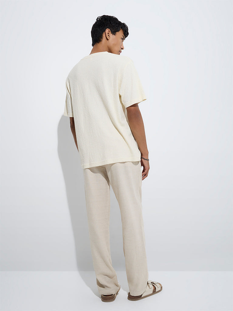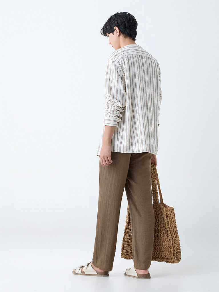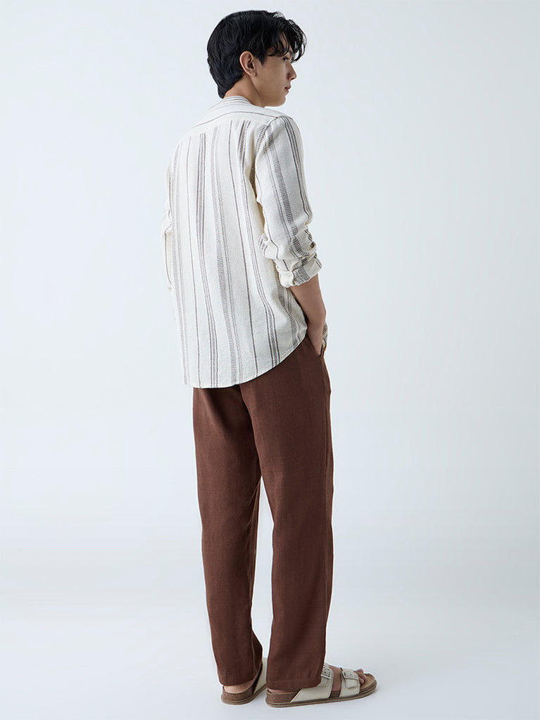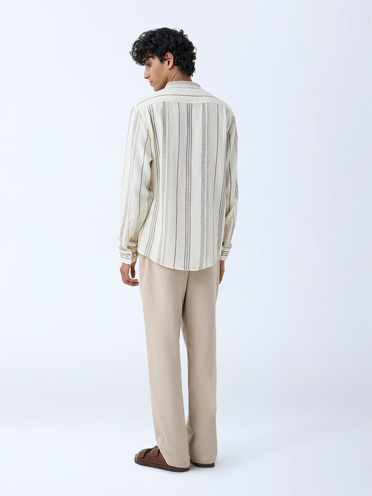 ETA Beige Striped Relaxed-Fit Mid-Rise Cotton Chinos