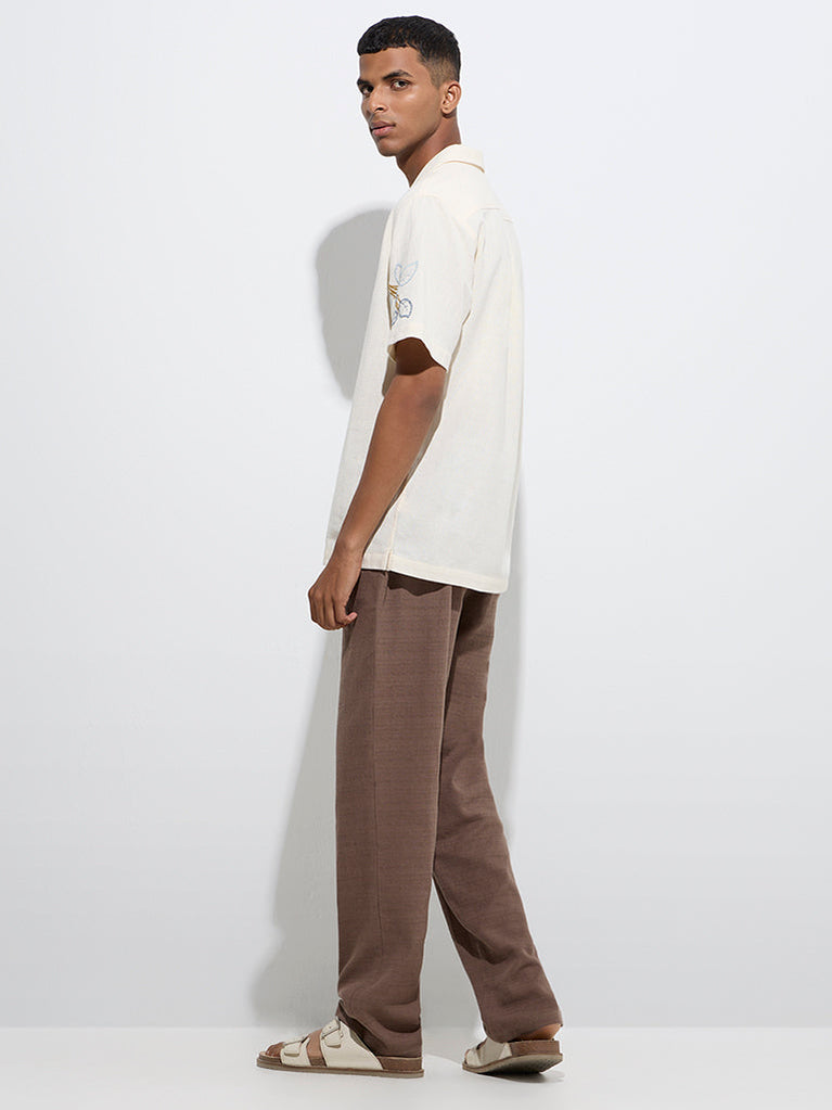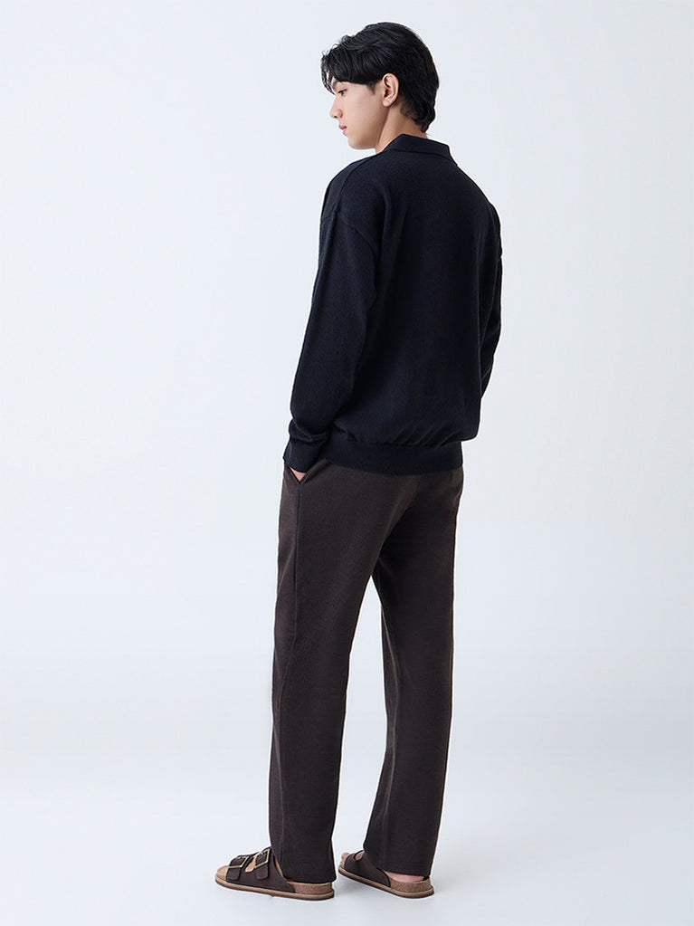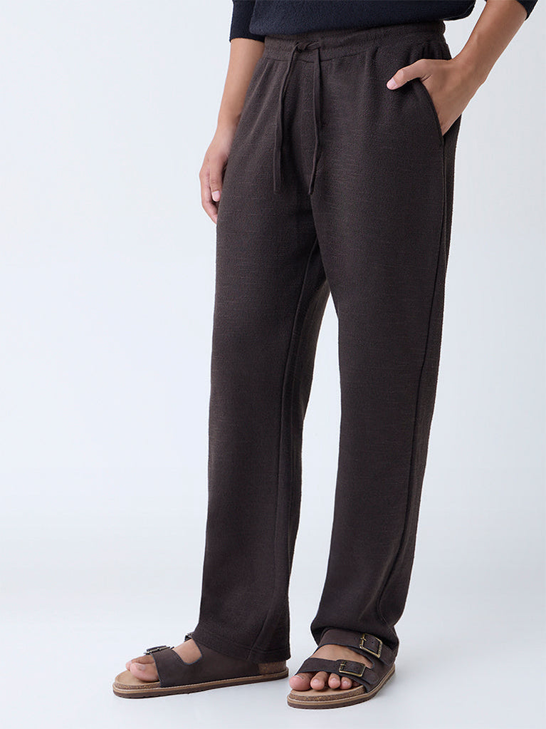 ETA Brown Solid Relaxed-Fit Mid-Rise Pants