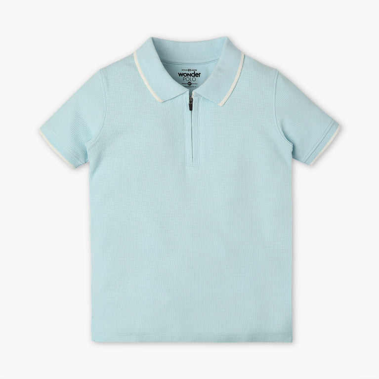 Boys Polo Neck Solid Wonder Reverse Coil with Zipper Polo T-Shirt