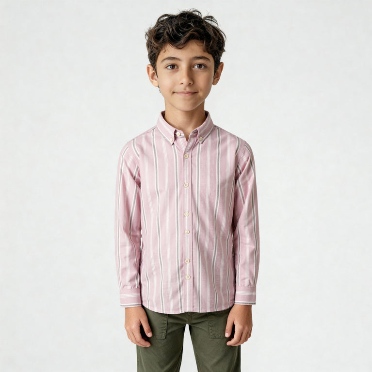 Experience the perfect blend of comfort and style with this boys' cotton striped shirt. Crafted from 100% cotton, it offers a soft touch against the skin, ensuring all-day comfort. The classic striped pattern adds a timeless appeal, making it a versatile addition to any wardrobe.