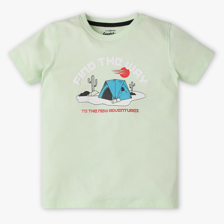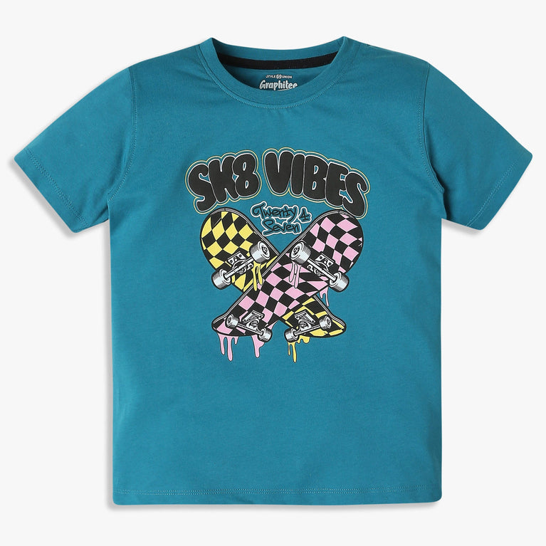 Experience the ultimate in comfort and style with our Boys Graphic Crew Neck T-Shirt. Made from 100% cotton, this t-shirt offers a soft and breathable feel, perfect for everyday adventures. The vibrant graphic pattern adds a playful touch, making it a favorite for boys who love to express their personality.