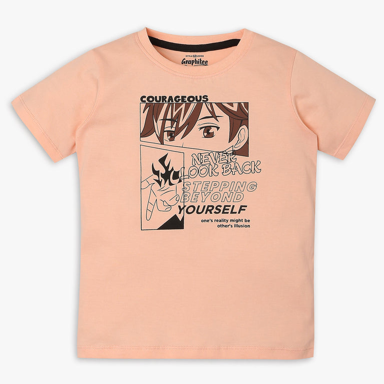 These graphic t shirt theme, graphic pattern t-shirt has crew neck and half sleeve. Made from cotton, your kid's feel comfortable wearing the product.