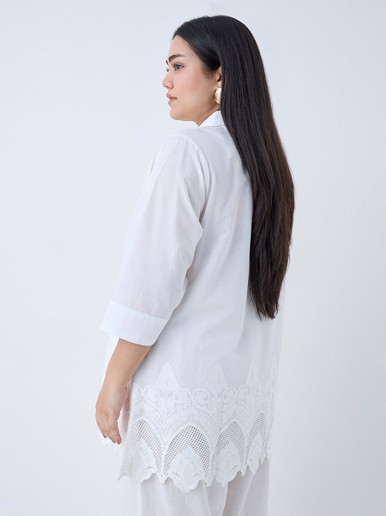 Diza White Schiffli Embroidered A-Line Cotton Kurta