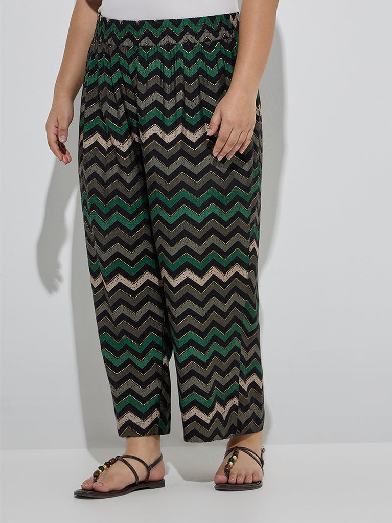 Diza Black Chevron Pattern Ethnic Pants