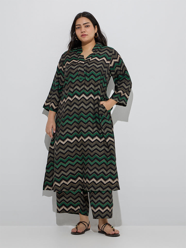 Diza Black Chevron Design A-Line Kurta