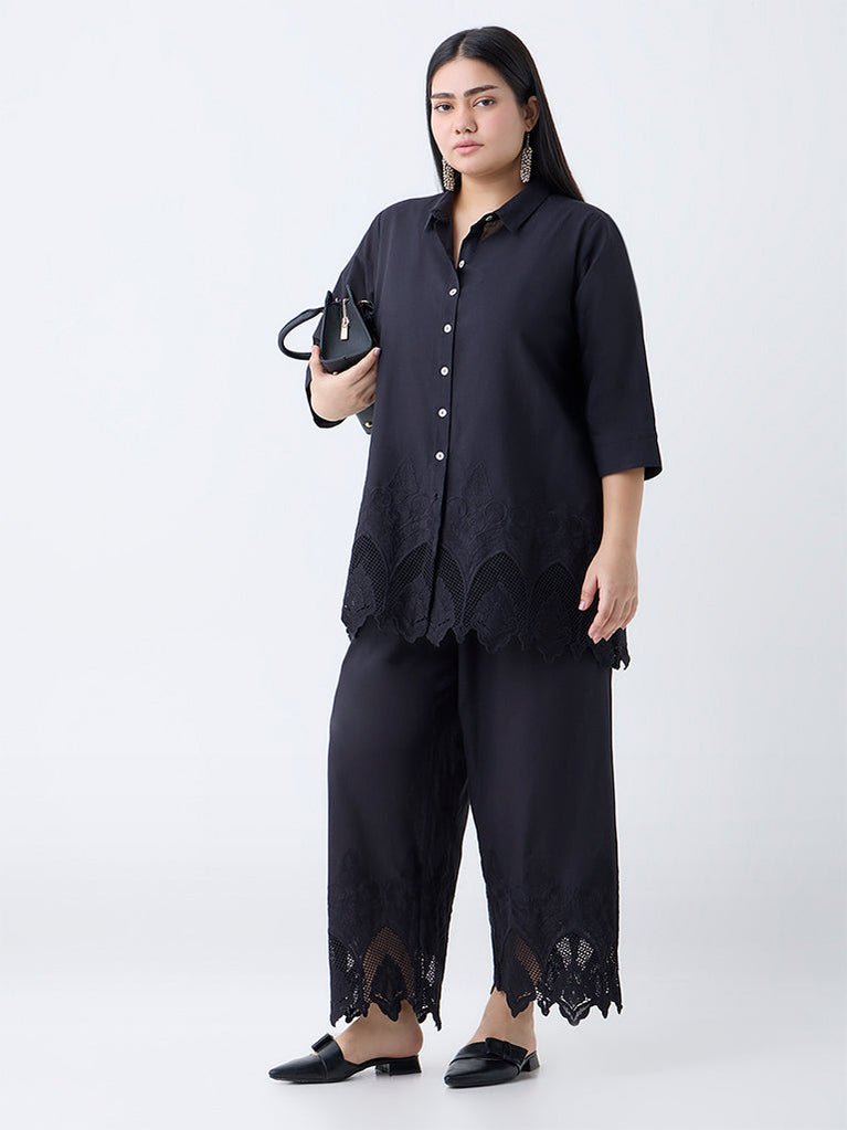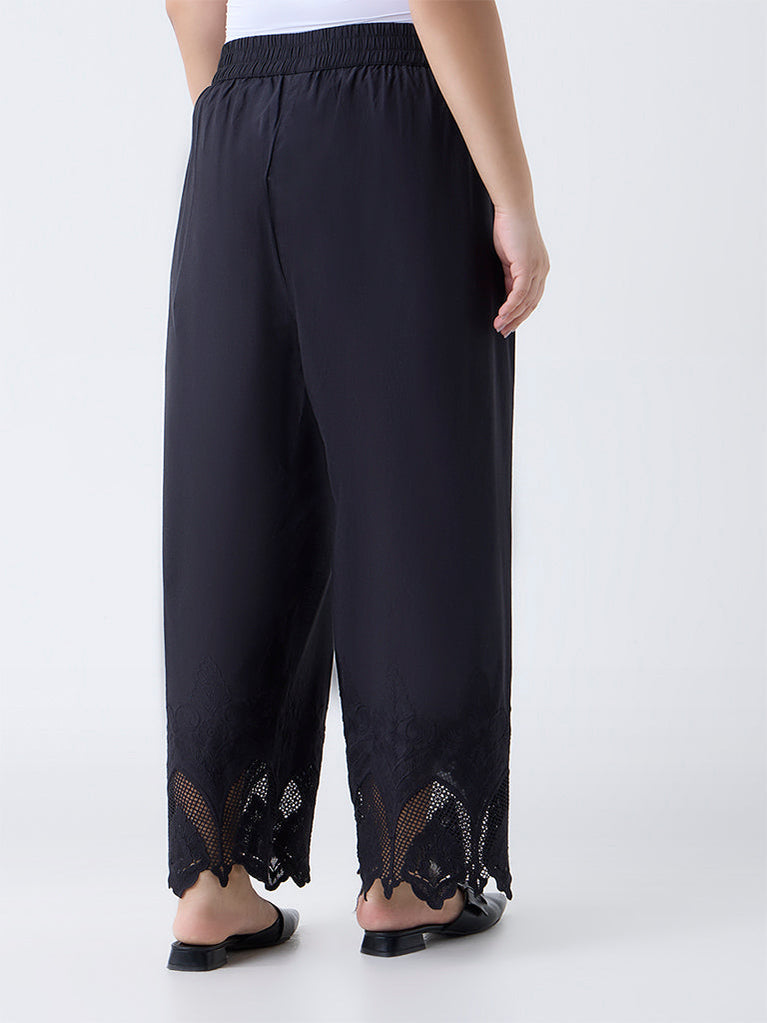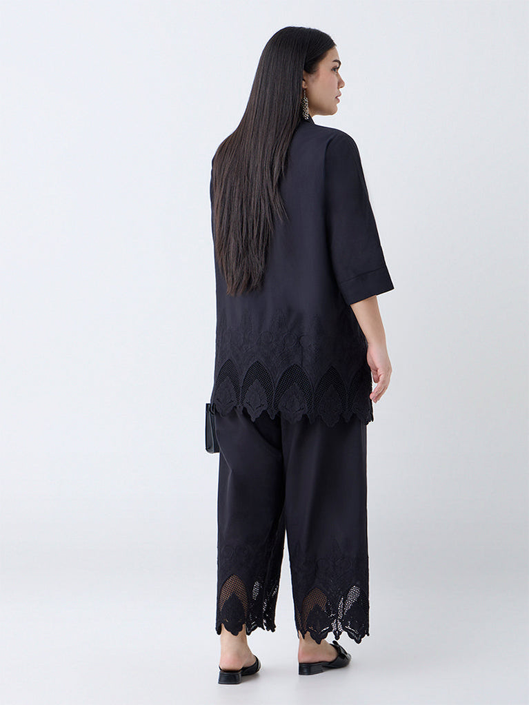 Diza Black Embroidered Cotton Pants