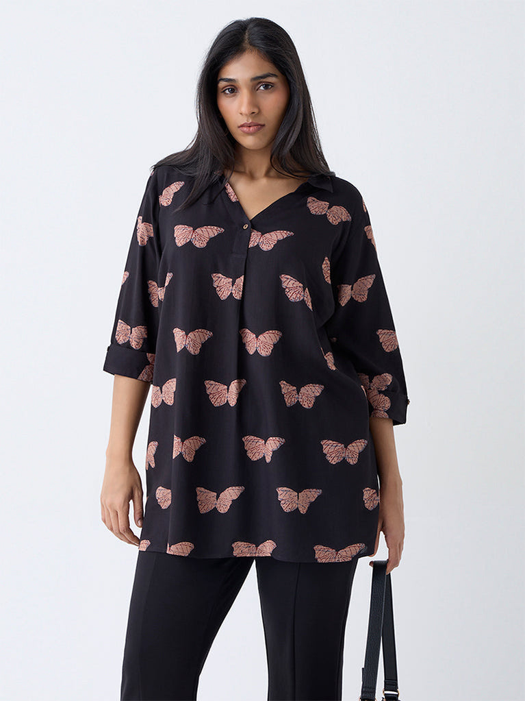 Diza Black Butterfly Printed Tunic