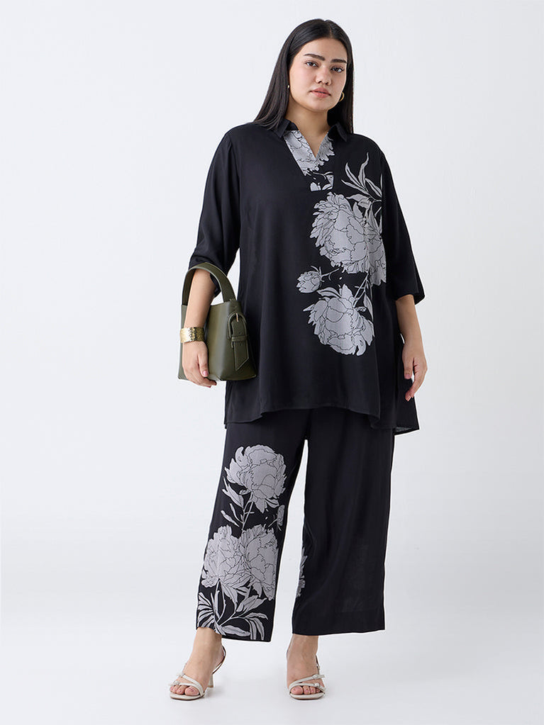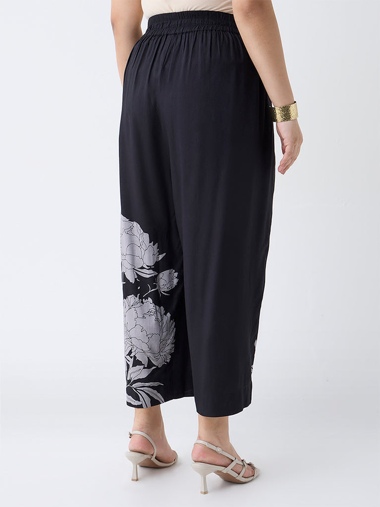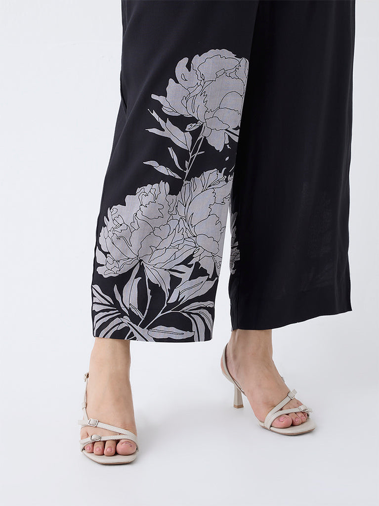Diza Black Botanical-Printed Pants