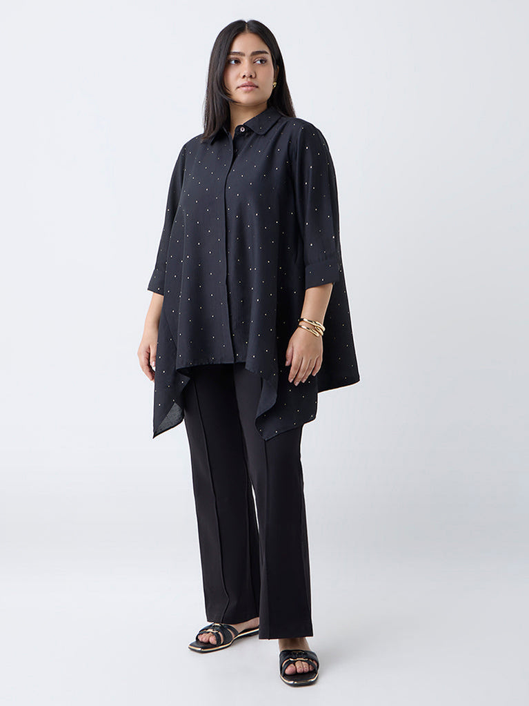 Diza Black Embellished Asymmetric Tunic