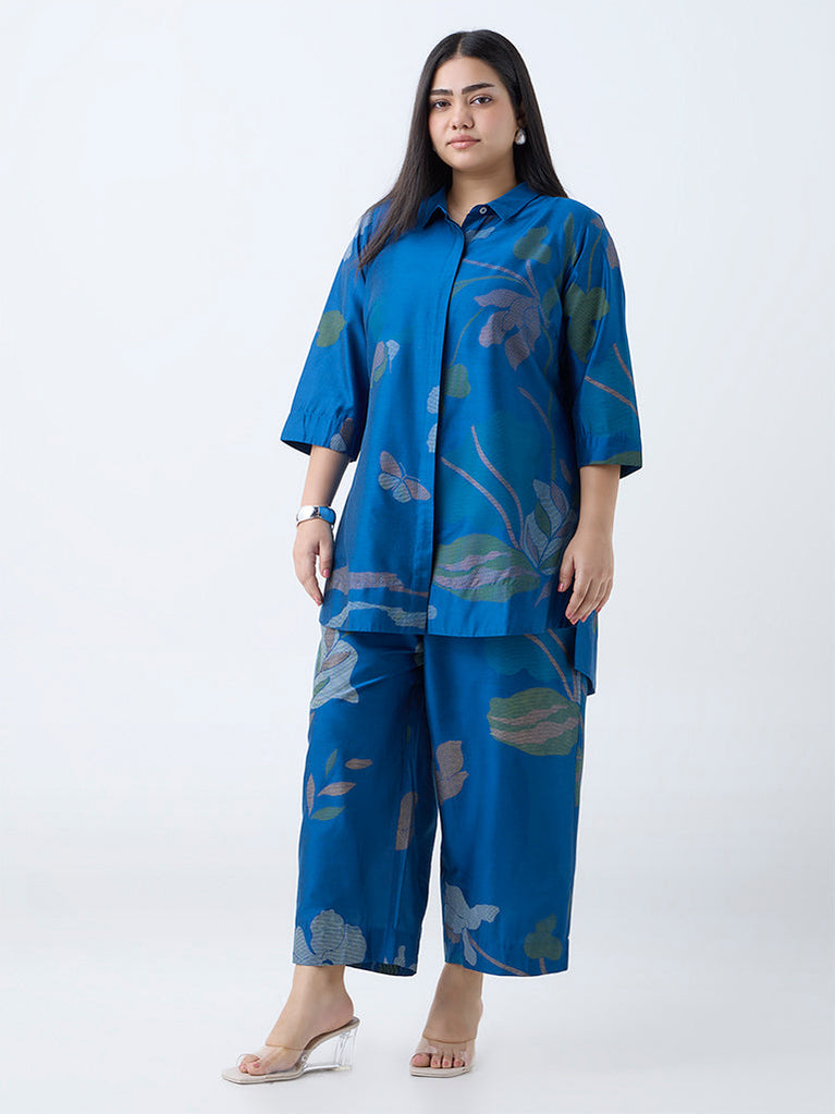 Diza Blue Botanical Printed High-Low Tunic