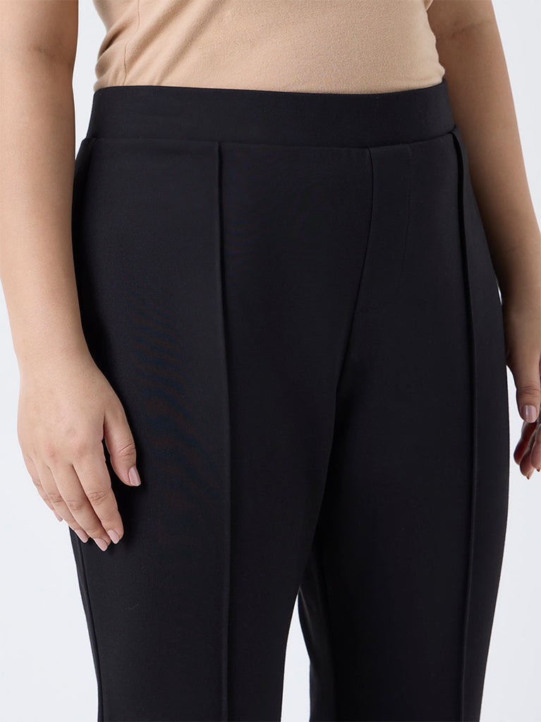 Diza Black Solid Flared Pants