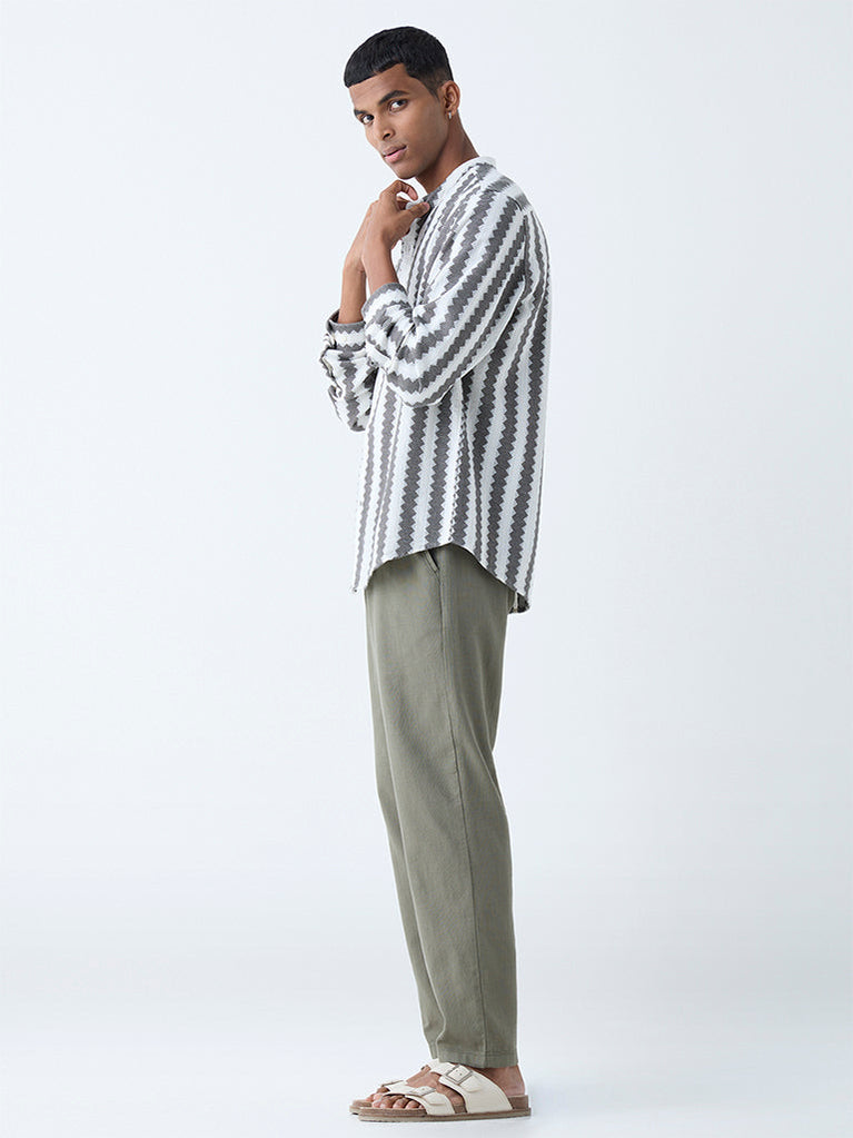 ETA Olive Stripe Relaxed-Fit Cotton Shirt