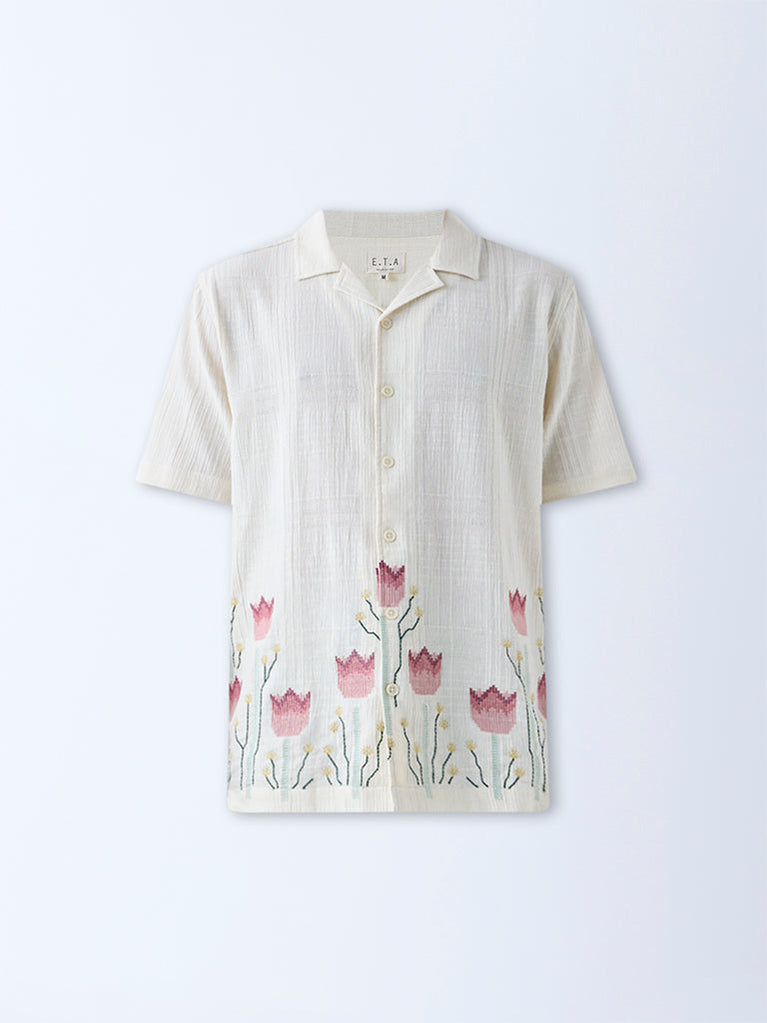 ETA Off-White Floral Embroidered Relaxed-Fit Cotton Shirt