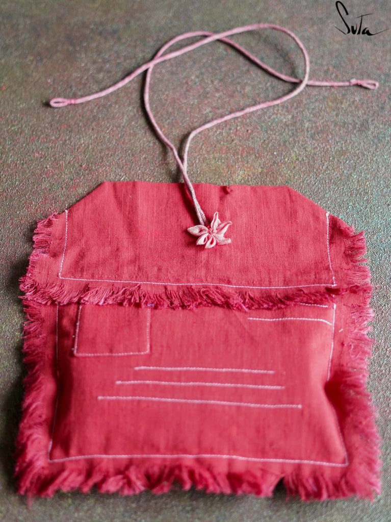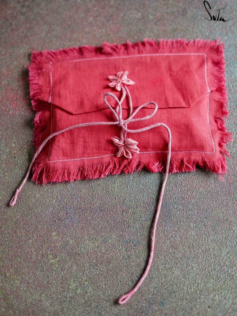 This is a fabric envelope to pack your Rakhi with extra love. The fabric of the envelope is cotton slub and the envelope contains a compartment to place money, a card with a sweet message, 2 small mul pouches with laung-elaichi and rice, respectively and a little coin pouch replica as a stamp.