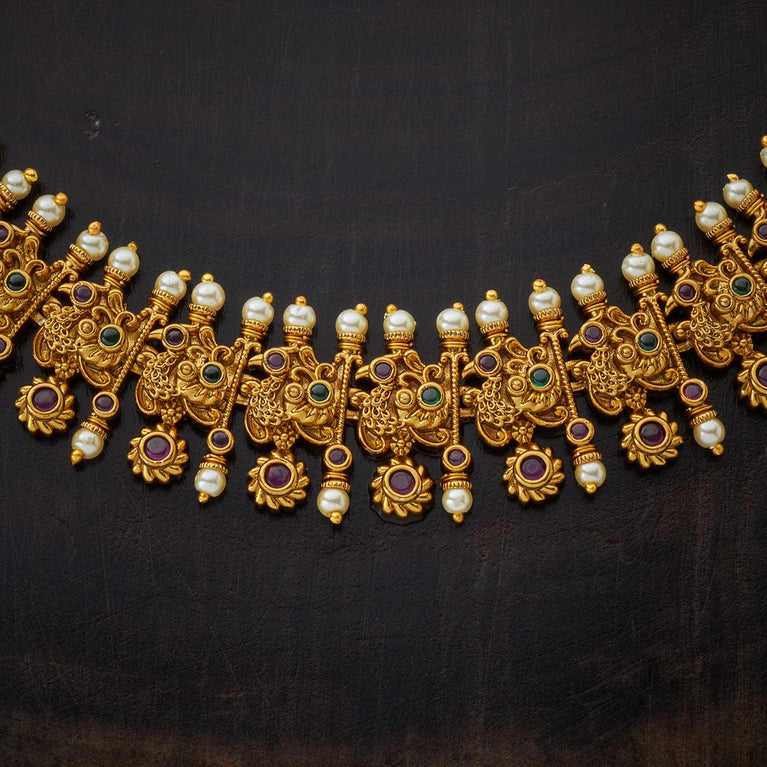Kushal's Fashion Jewellery Flower Motif Antique NecklaceGet pleased with this absolutely beautiful antique necklace paired with a set of earrings. We craft these neckpieces with care and authentic material like copper alloy. The intricate designs enhance its overall appearance. Look compelling in your traditional outfit by pairing it with our antique necklace and earrings on any occasion.