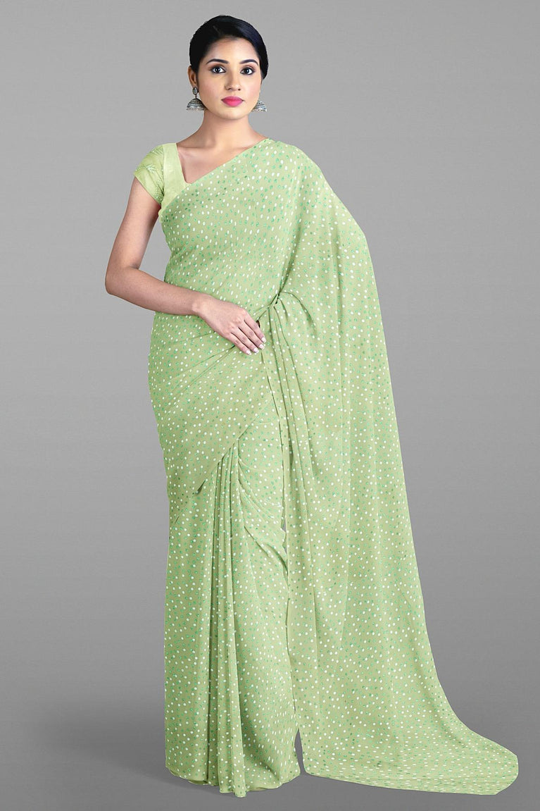 LIGHT GREEN and WHITE DIGITAL PRINT GEORGETTE Saree with FANCY