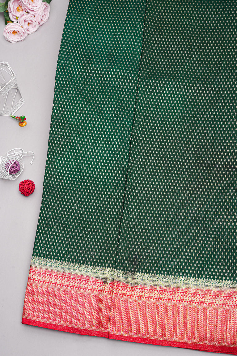 DARK GREEN and CREAM ZARI BUTTA VISCOSE GEORGETTE Saree with BANARASI