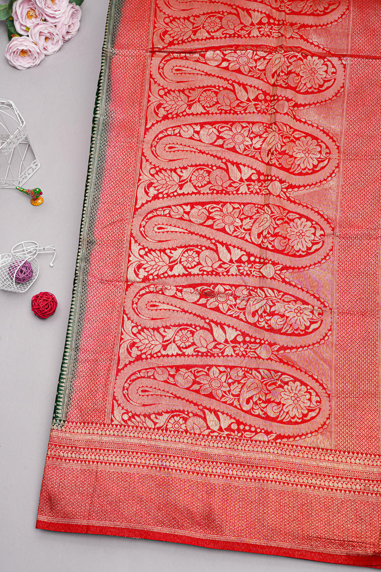 DARK GREEN and MAROON BUTTIS SILK Saree with FANCY