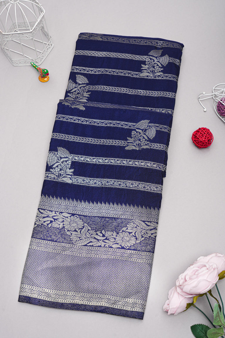 NAVY BLUE and GOLD FLORALS SILK Saree with FANCY