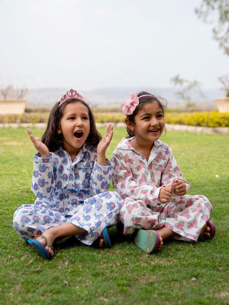 Unicorn Block Printed Cotton Top & Pyjama Set