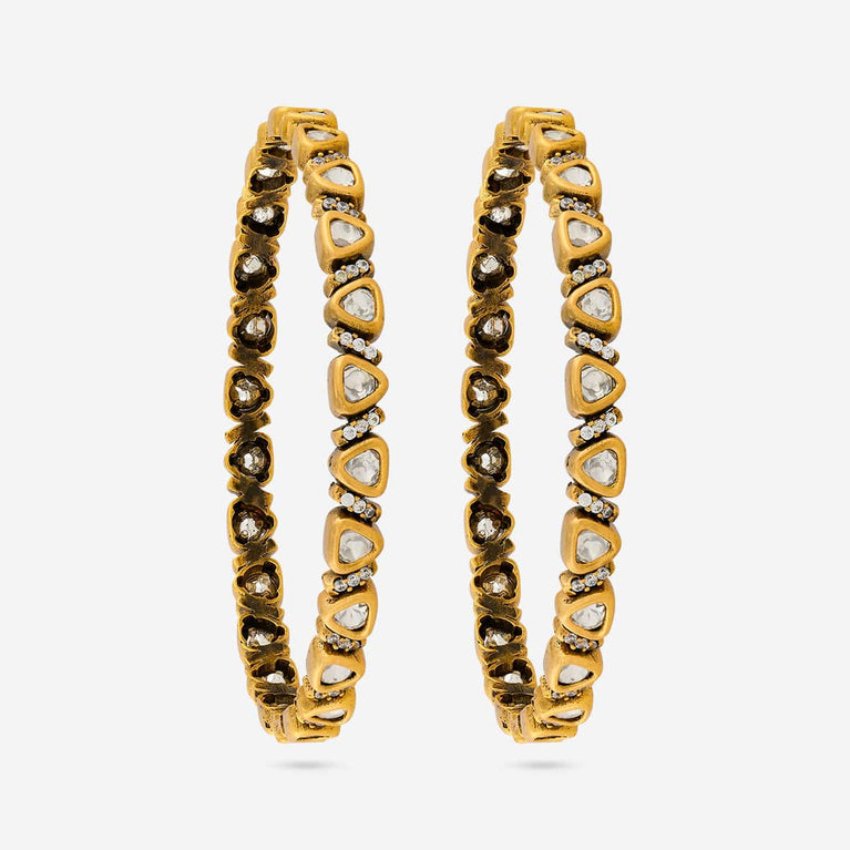 Kushal's Fashion Jewellery Bridesmaid Kundan BangleBangles are an excellent way to romp up your ethnic fashion game. If you are one of those devoted fashionistas who fancy wearing bangles, you will love Kundan bangles from the house of Kushal's . These bangles are embedded with clear-cut Kundan stones to elevate the beauty. The copper alloy base will extend its charm by being lightweight and comfortable.