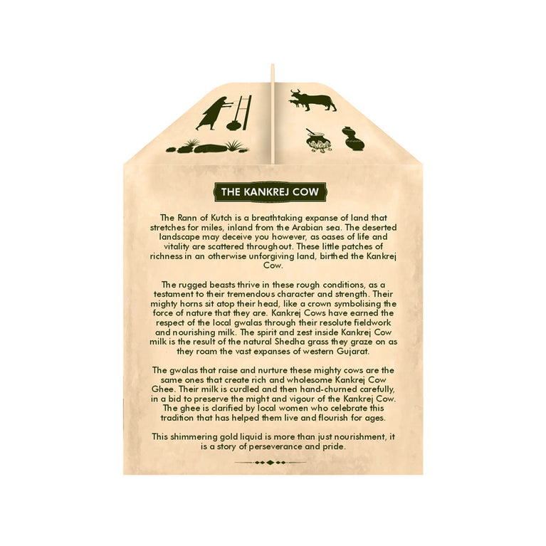KANKREJ COWSJivika Naturals Kutch A2 Kankrej Cow Ghee is made by native gwala communities in Kutch, Gujarat. The Rugged Kankrej Cows receive the utmost care and attention from the gwalas, and the same goes for each drop of our ghee.