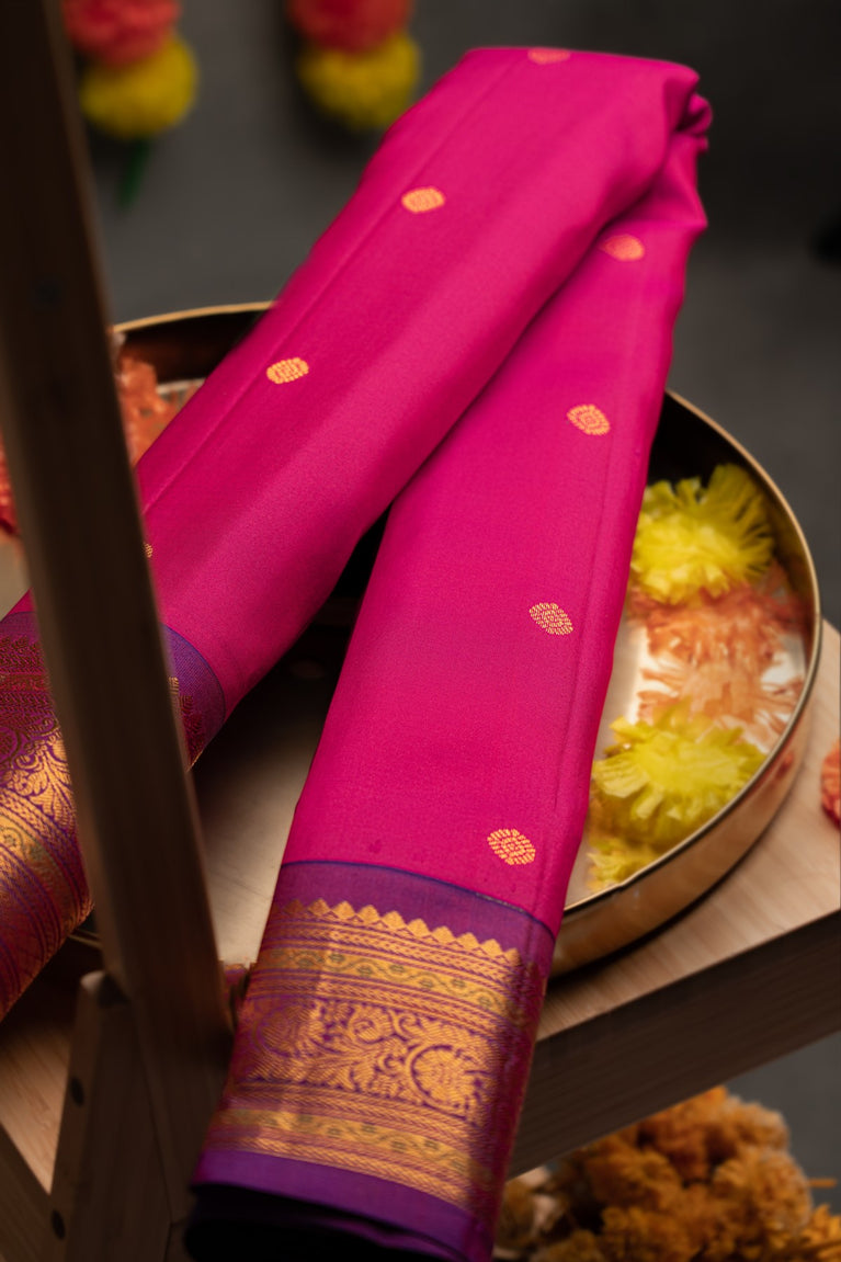 Mandir Pink & Purple Gadwal Buttis Saree