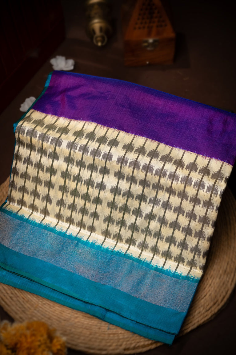 Mandir Purple & Cream Ikat Plain Saree