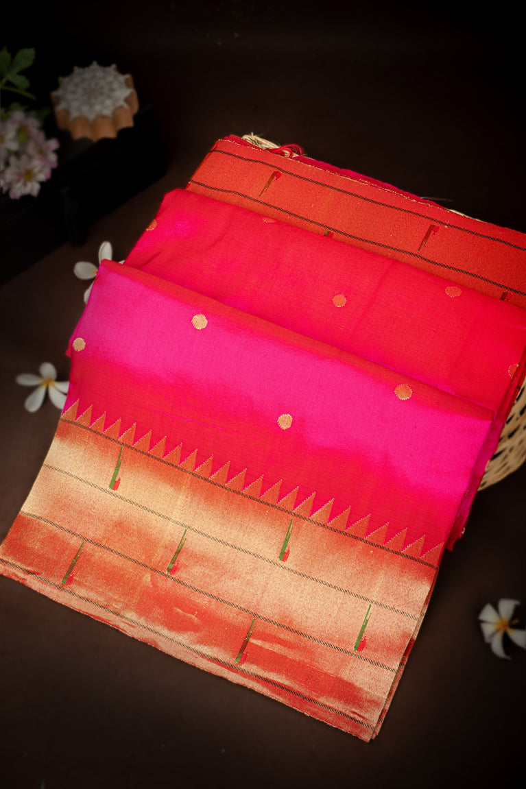 Mandir Pink & Red Paithani Buttis Saree