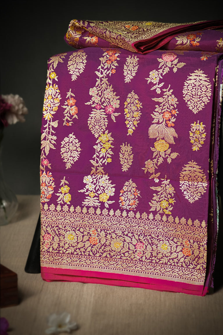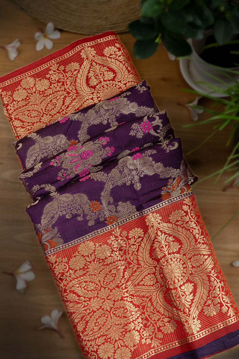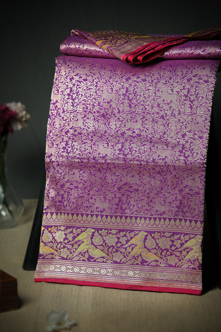 Mandir Purple & Gold Banarasi Motifs Saree