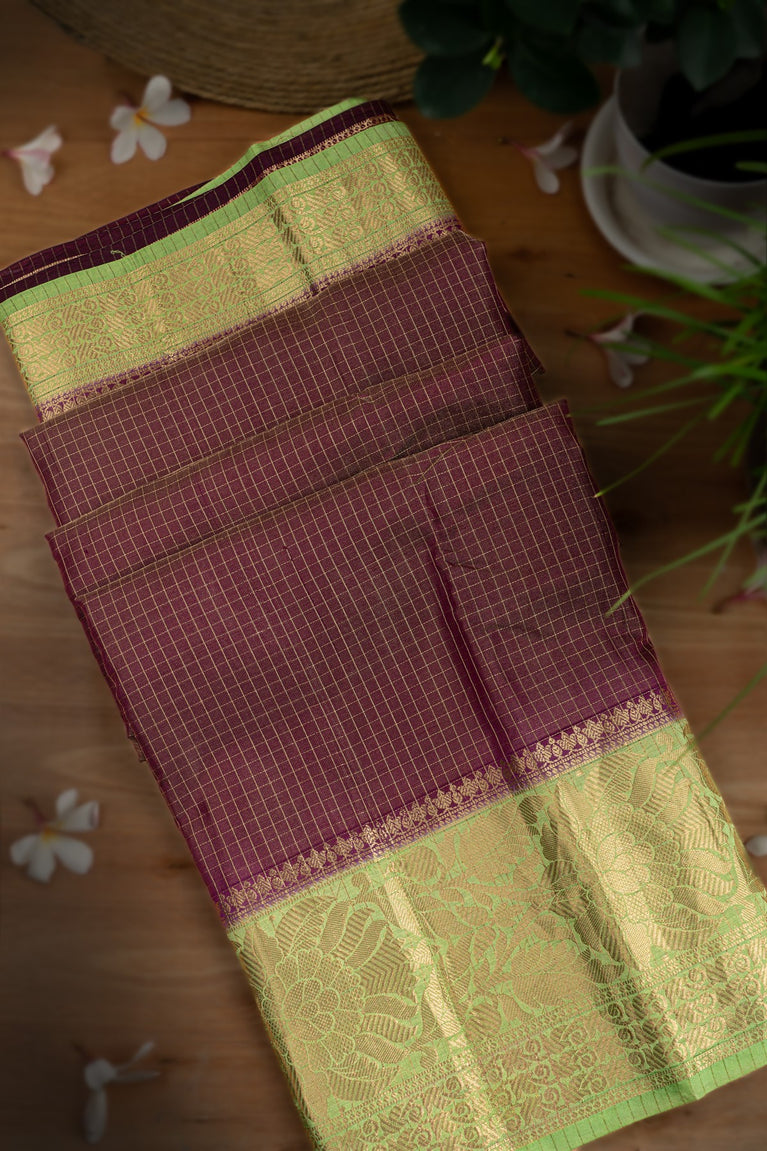 Mandir Purple & Pista Green Fancy Checks Saree