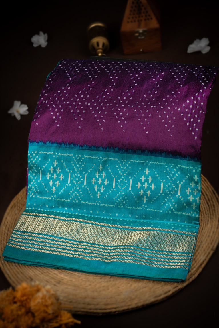 Mandir Purple & Teal Blue Kanchi Ikat Ikat Saree