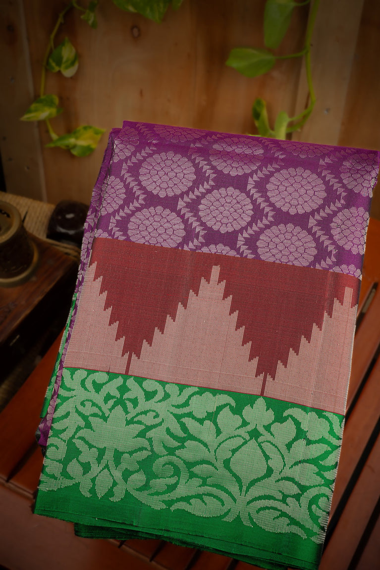 Mandir Purple & Green Coimbatore All Over Saree
