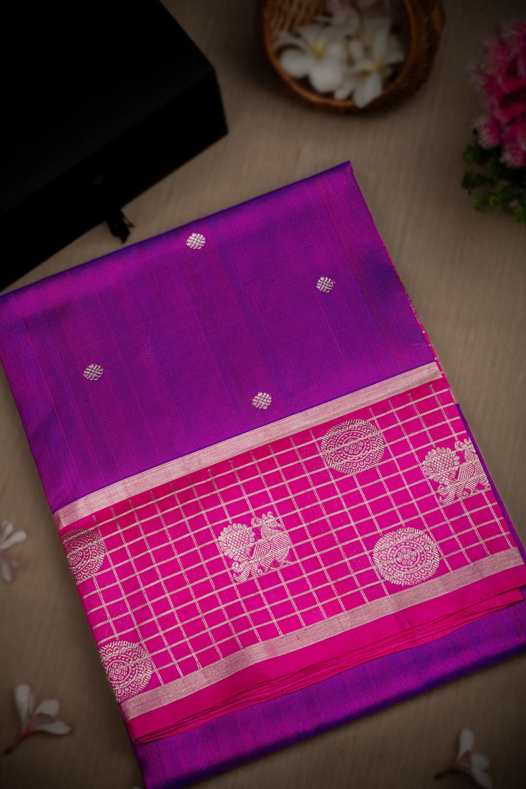 Mandir Purple & Pink Venkatagiri Buttis Saree