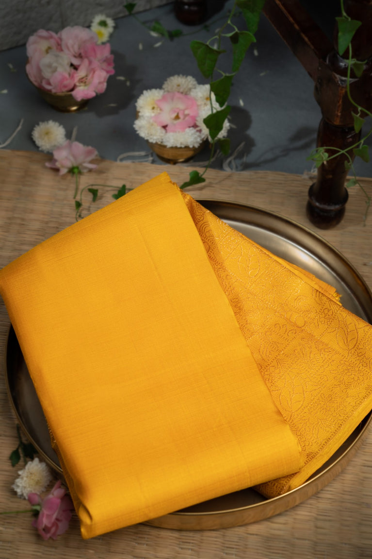 Mandir Yellow & Yellow Kanchipuram Plain Saree