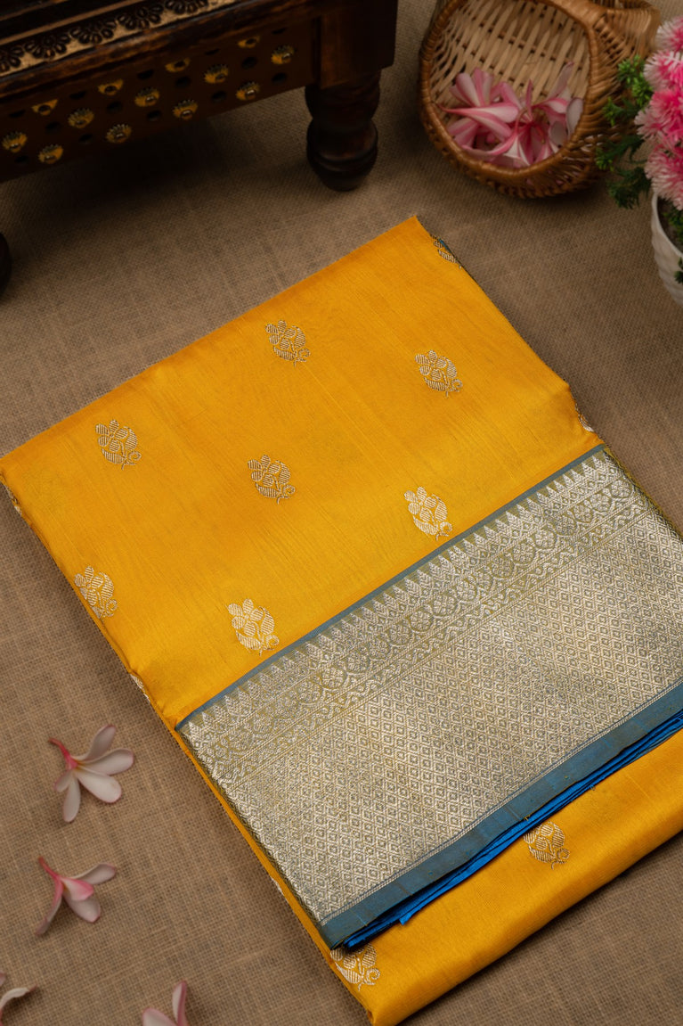 Mandir Mustard & Silver Uppada Buttis Saree