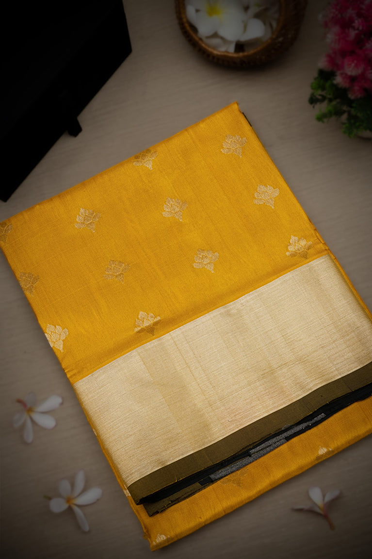 Mandir Mustard & Gold Chanderi Buttis Saree