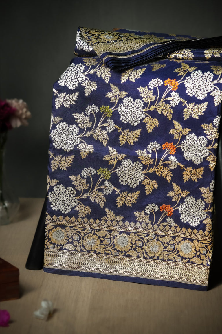 Mandir Navy Blue & Multi-Colour Banarasi Jaal Saree