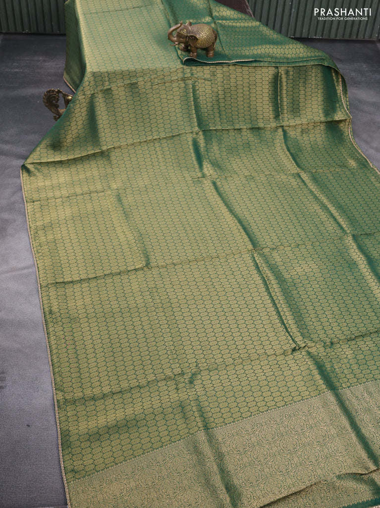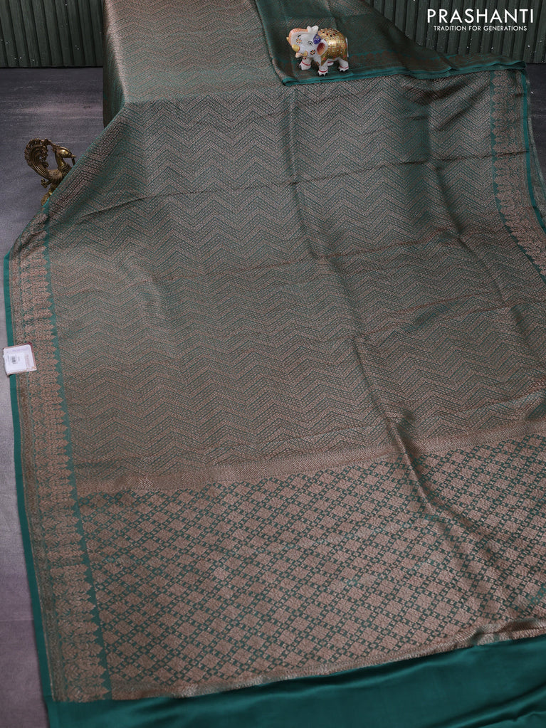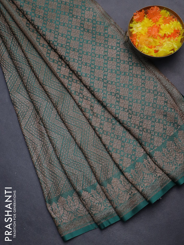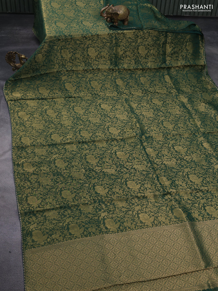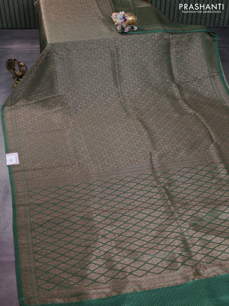 Banarasi semi crepe saree dark mehendi green with allover thread & zari woven brocade weaves and woven border
